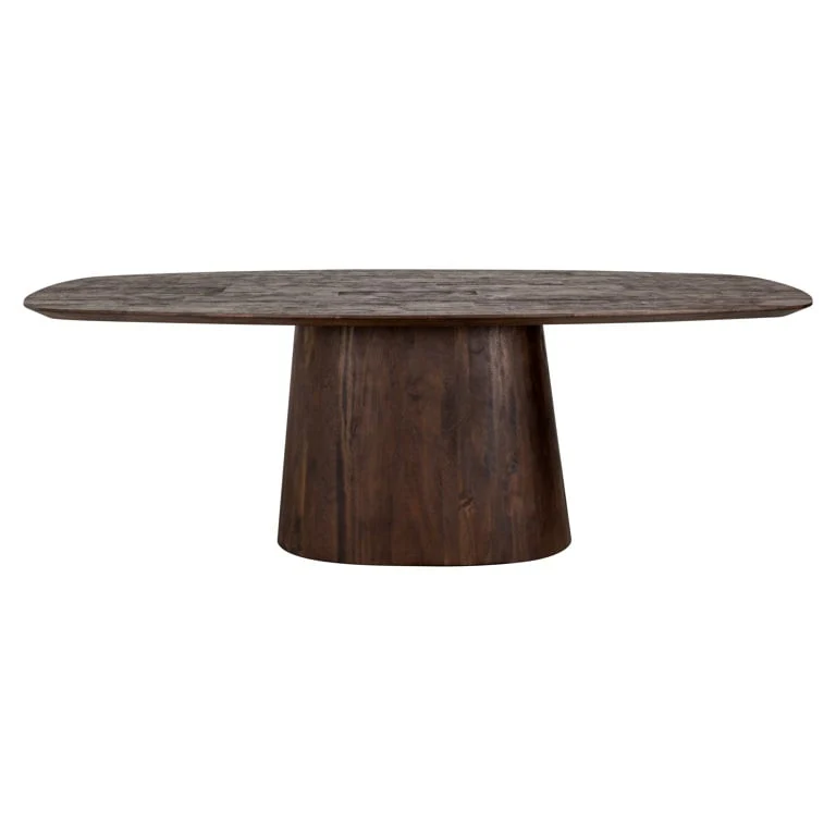 Introducing the stunning Dining table Alix danish oval 230 (Dark brown) from House of Isabella. This luxurious piece of furniture is a true statement piece, perfect for any dining room. Crafted from high-quality mango wood, this table exudes elegance and sophistication. With its unique oval shape and rich dark brown finish, it will add a touch of luxury to any interior. Measuring 76cm in height, 230cm in width, and 120cm in depth, this table is the perfect size for hosting dinner parties or family gatherings. Plus, with a gross weight of 99.5kg, it is sturdy and durable. Don't miss out on this must-have piece for your home. Order now and enjoy free UK delivery from House of Isabella.